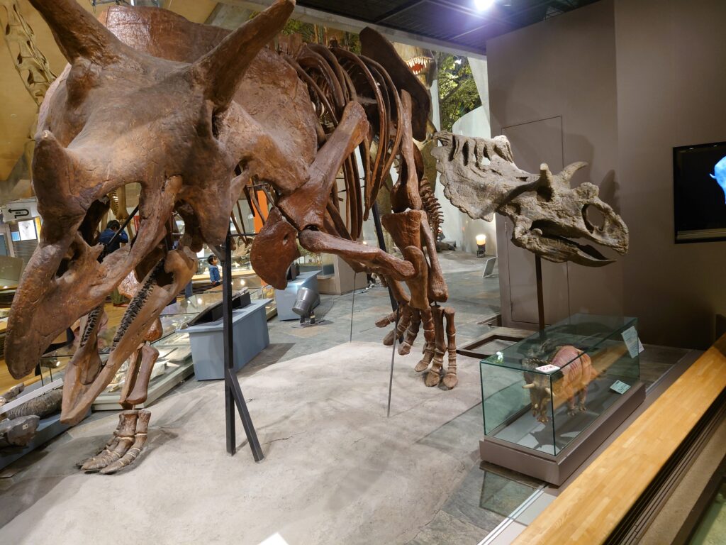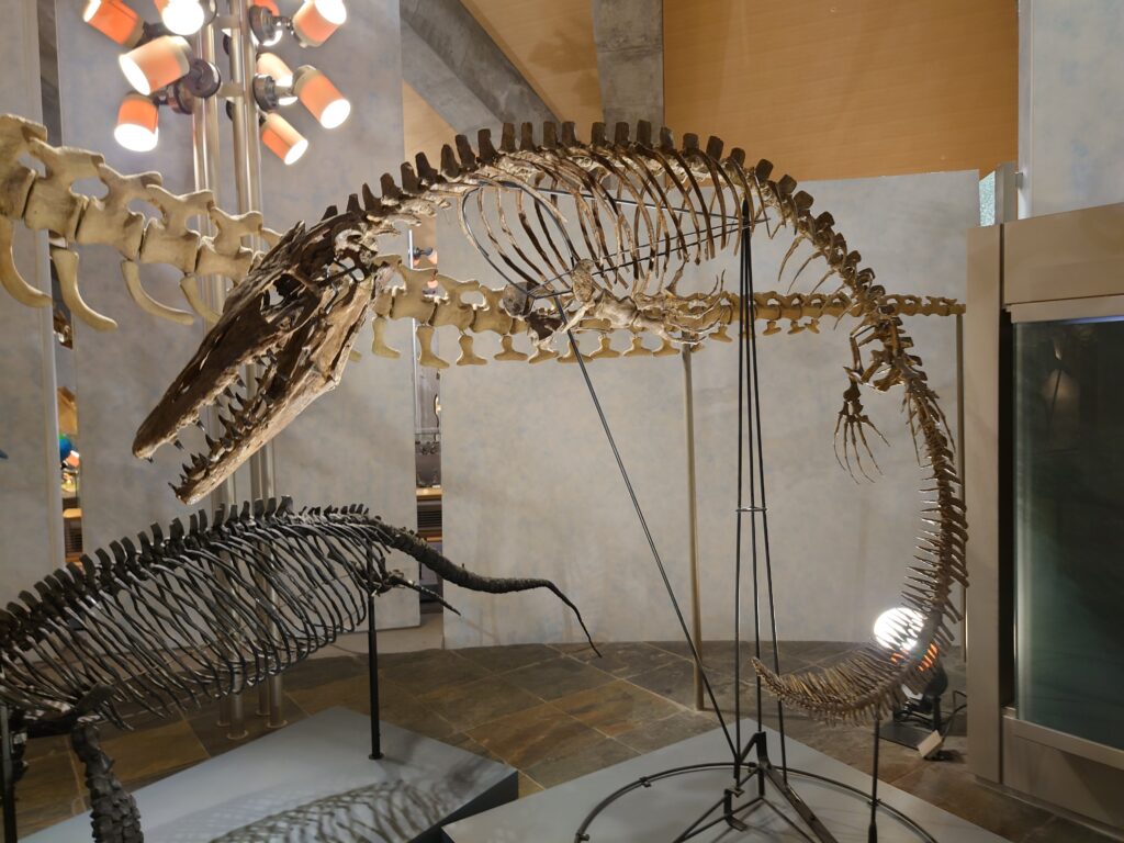 訪れてまず驚くのは、想像以上に多く並ぶ恐竜の骨格レプリカ。