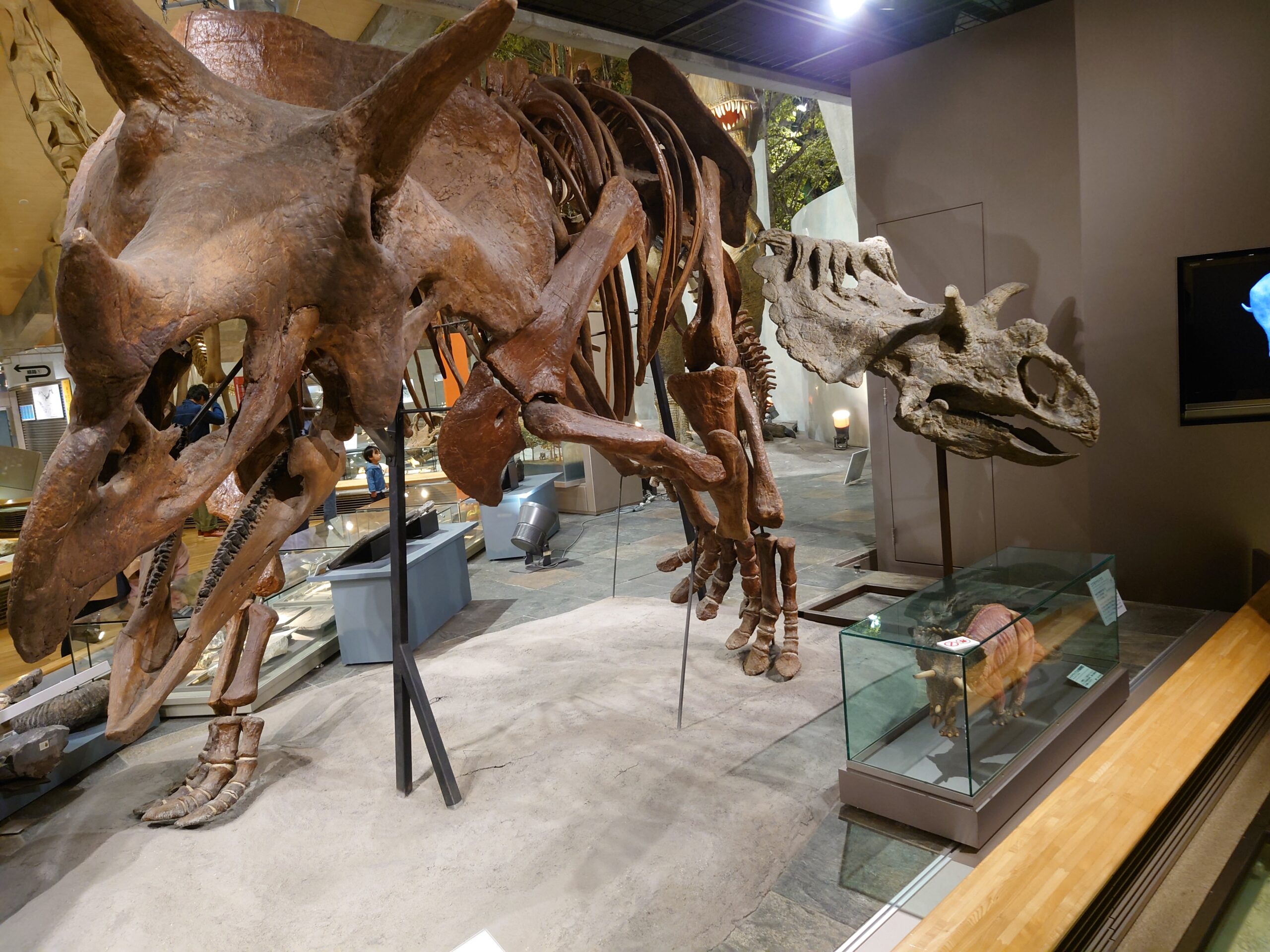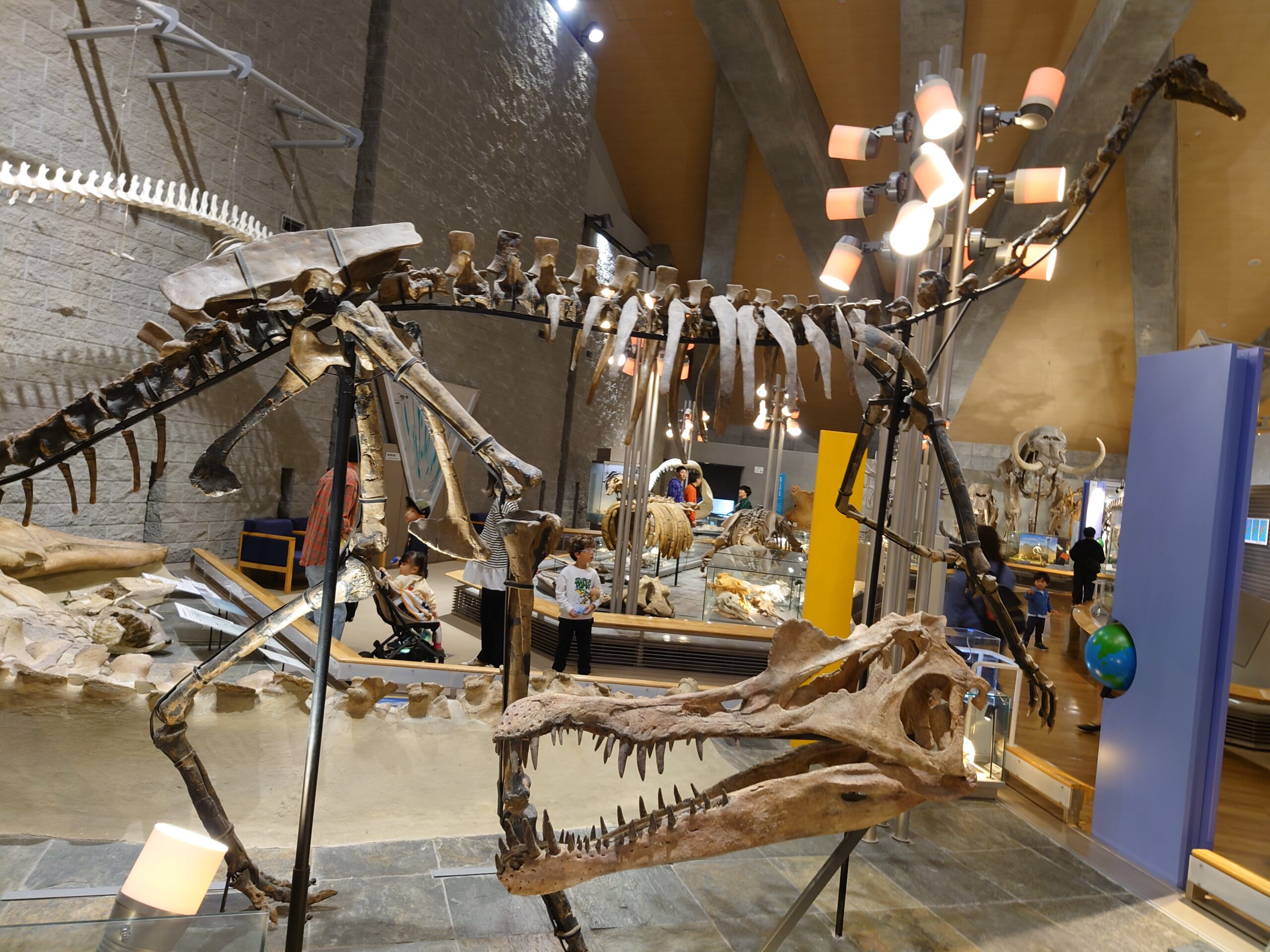館内には恐竜を中心に、微生物から人間までの進化の過程をたどる標本や展示が多数そろっています。