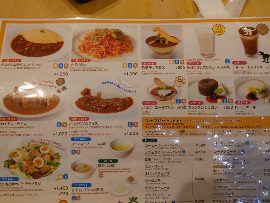 館内レストランでは恐竜をモチーフにしたメニューも用意されています。