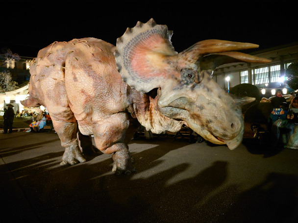 博物館の中庭を円形状に恐竜たちが行進する演出は、他ではなかなか味わえません。