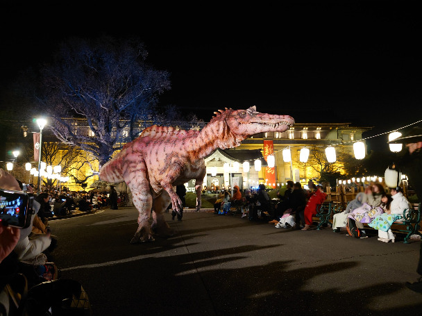DINO-A-LIVE「恐竜大夜行 2025」は、東京国立博物館の中庭を舞台に行われる、夜の屋外恐竜ライブイベント。
